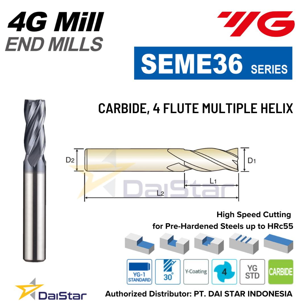 Spesifikasi SEME36 Series 4G MILL – Square Endmill Carbide 4 Flute Short YG1