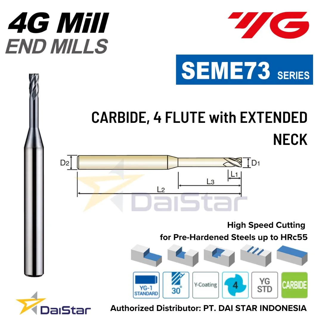Spesifikasi SEME73 Series 4G MILL – Carbide Endmill Long Neck 4 Flute YG1